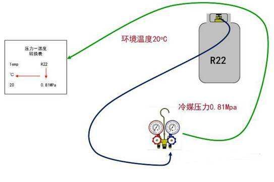 機房空調機組的充注量可在實驗室精確測定 ,然后根據現場情況進行適當修正 ,就可基本確定每一臺現場安裝的機房空調機組的充注量 ,然后據此可用稱重法將制冷劑充入機組。但此方法在實際應用中有兩個問題 ,有時機組的充注量的準確值不容易確定 ,有時現場不容易找到準確稱重的設備 ,此時只能用觀察壓力法進行制冷劑的充注。